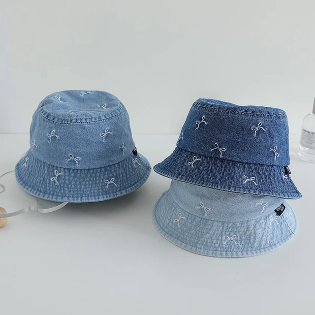 Spring Summer Baby Fisherman Hats Lovely Bow Pattern Kids Boys Girls Outdoor Sun Hat Fashion Denim Children Bucket Caps