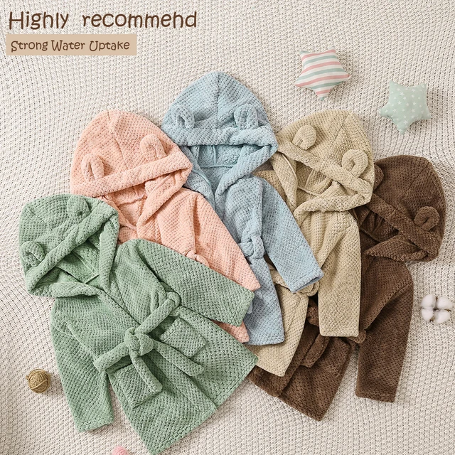 Long-sleeved cute bathrobe, available in four seasons, with high-quality fabric, strong water absorption, multiple color options