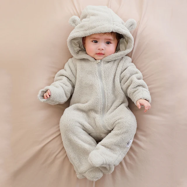 Newborn Baby Rompers with Ears Spring Soft Clothing for Babies Polar Fleece Infant Girl Oneies Cute Newborn Bodysuit 0-12 Months