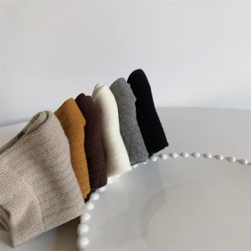 1 Pair Simplicity Baby Sock Milk Coffee Solid Color Series Calf Sock for Toddler Boy Girl Spring Autumn Cotton Thin School Sock