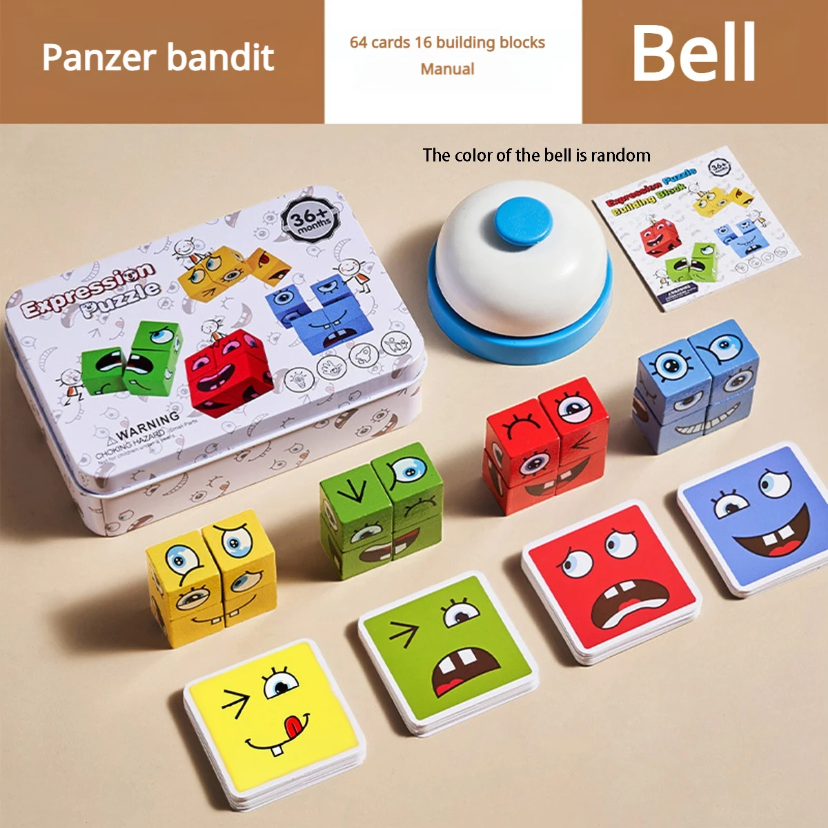 1 Set Face Changing Building Blocks Wooden Puzzle Toys Smiling Face Desktop Game Board Games Parent Child Interacti