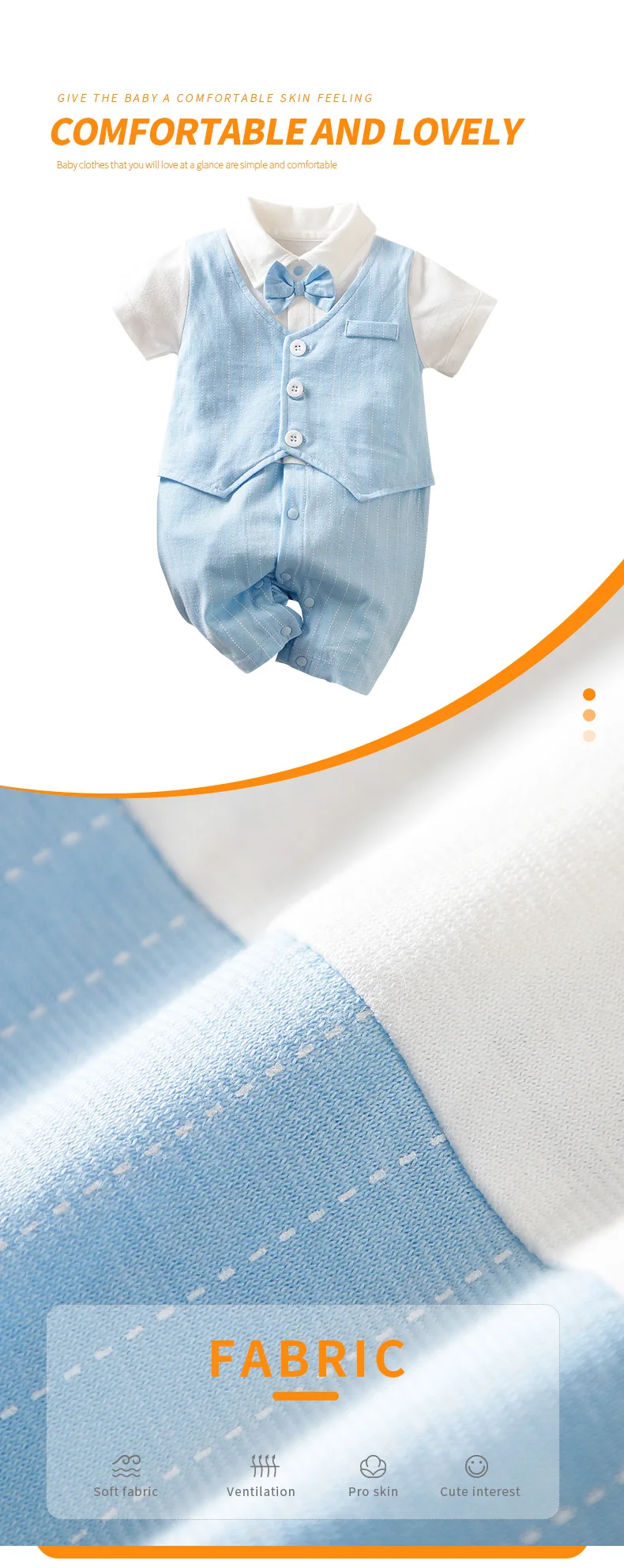 100% Cotton Short Sleeve 0-18 months Gentleman Tie Outfit Handsome Jumpsuit Baby Boys Suits Cotton Onesie Newborn Toddler Trendy