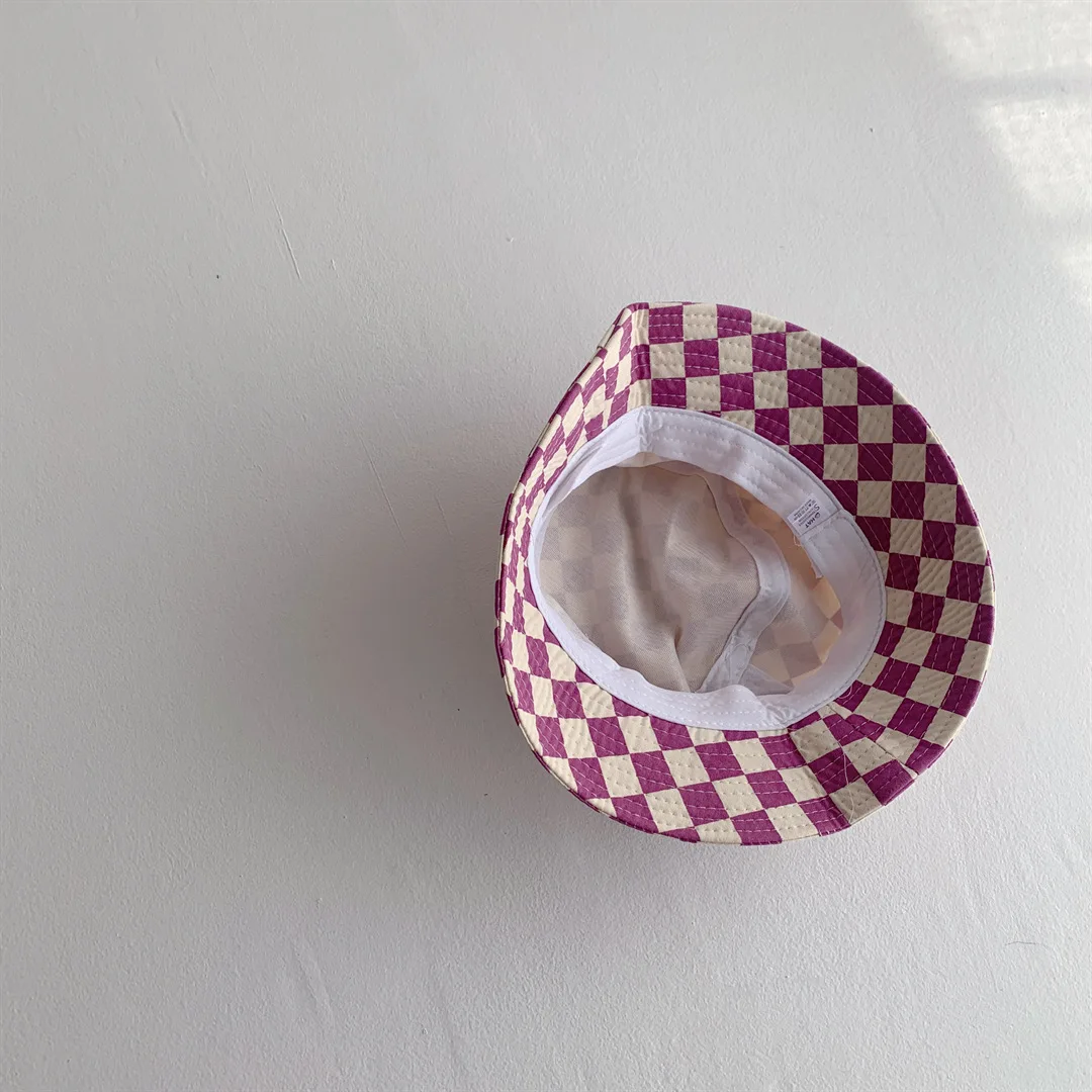 1PCS Fashionable Checkerboard Pattern Kids Bucket Hat Cute Plaid Baby Boys Girls Sun Hat Soft Kids Chilren Fisherman Panama Caps
