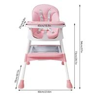 2 in 1 Baby High Chair with Footrest Adjustable Mobile Chair Seat Belts Double Tray For Babies and Toddlers From 6 Months Pink
