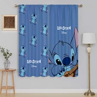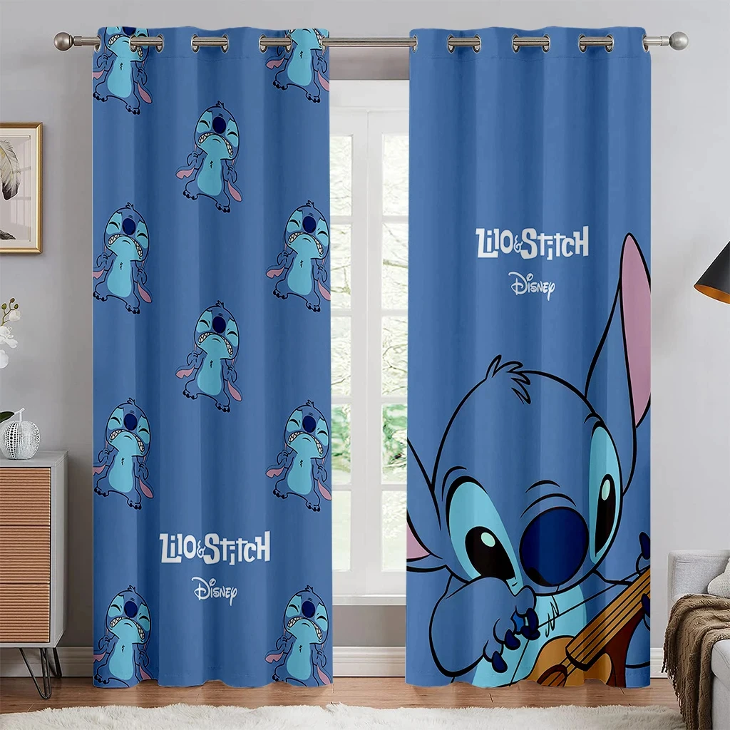 2PCS Blue Stitch Cartoon Curtains – Rod Pocket Drapes for Kids’ Bedroom & Home Decor
