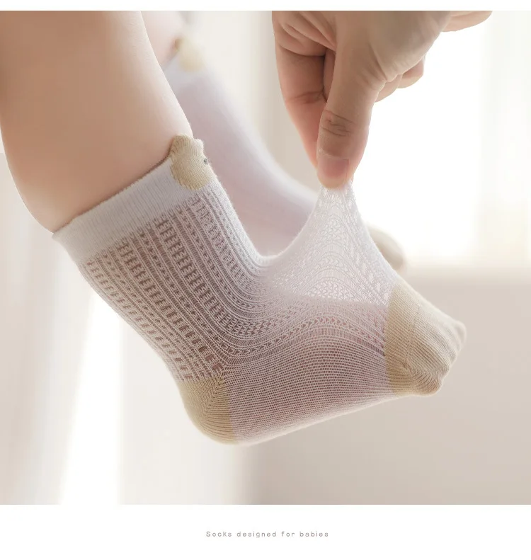 3/5 Pairs Baby Anti-Slip Socks Cartoon Newborn Socks Mesh Thin Children’S Socks Comfort Wear Non-Slip Baby Socks