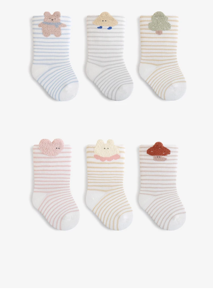 3 Pairs Newborn Baby Socks Cartoon Striped Children Kids Sock Soft Comfortable Toddler Socks For Girls Boys Accessories