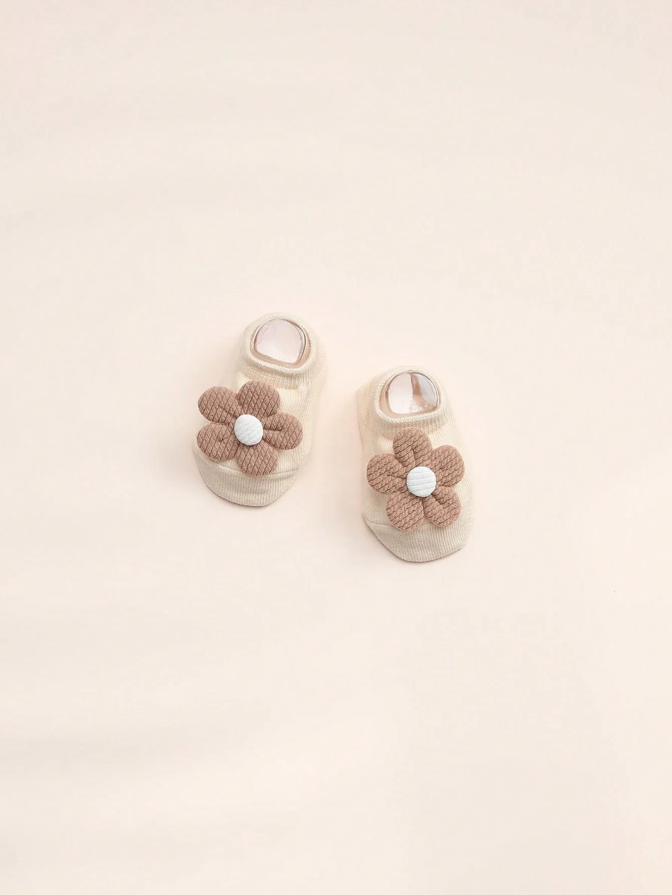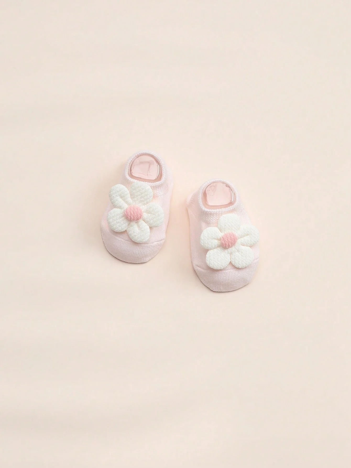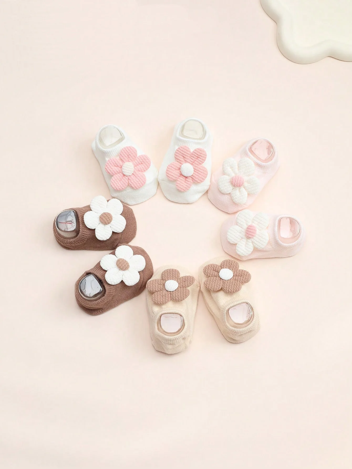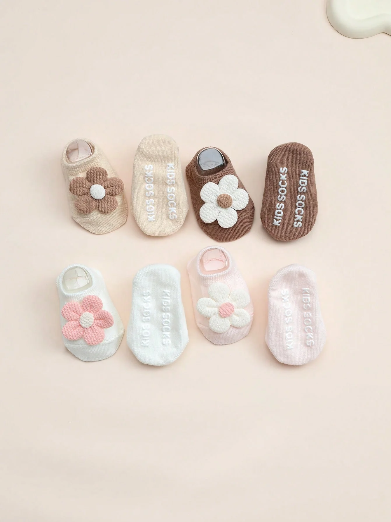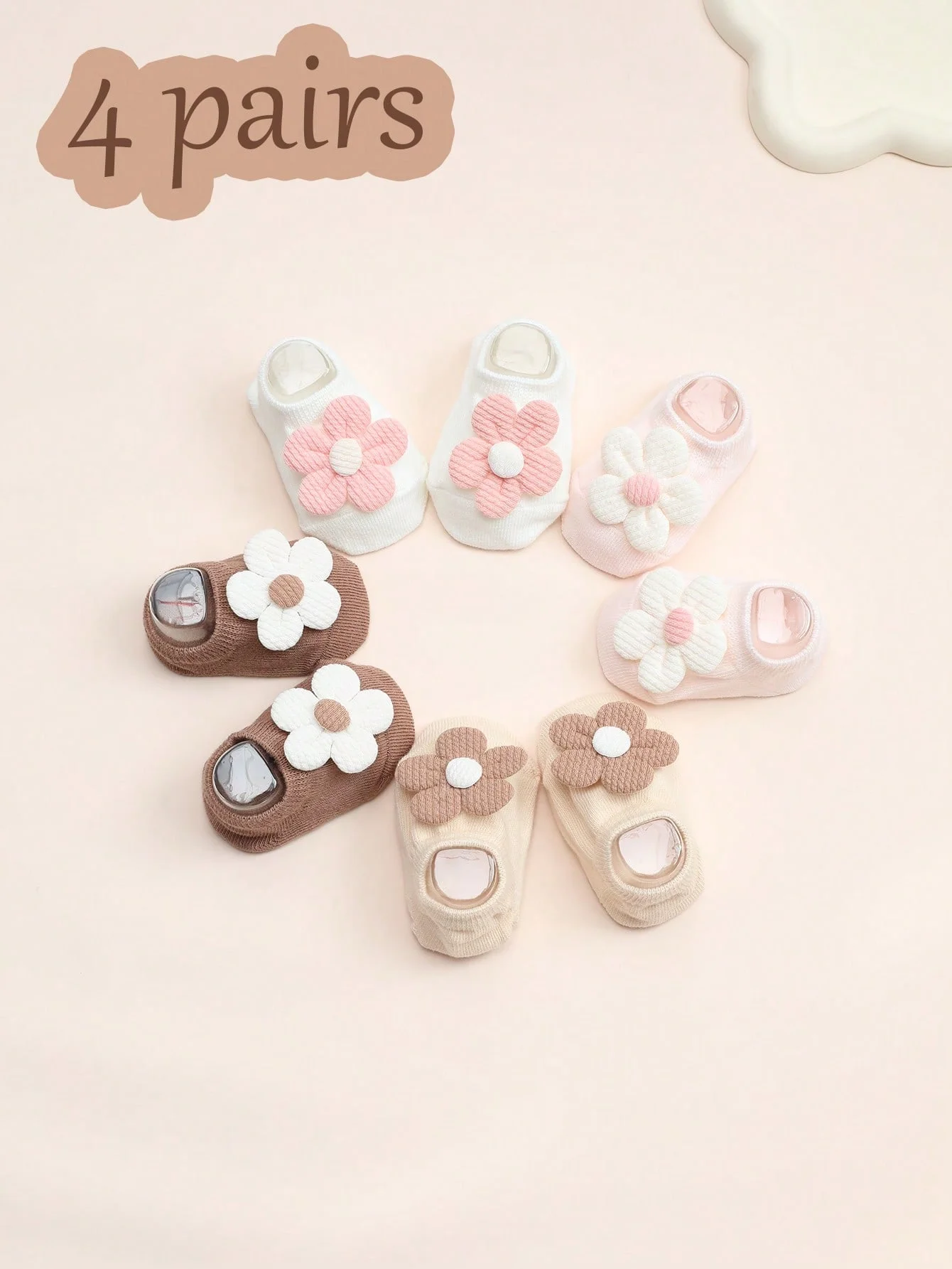 4 Pairs Baby Girls Socks with Cute Flower Decoration, Newborn Infant Fashion Cotton Soft, Breathable, Non-Slip for 0-24 Months Kids