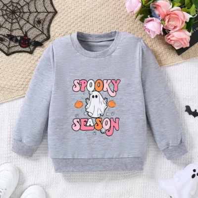 Baby Girls Halloween Hoodie – Cute Ghost & Pumpkin Print Long Sleeve Shirt