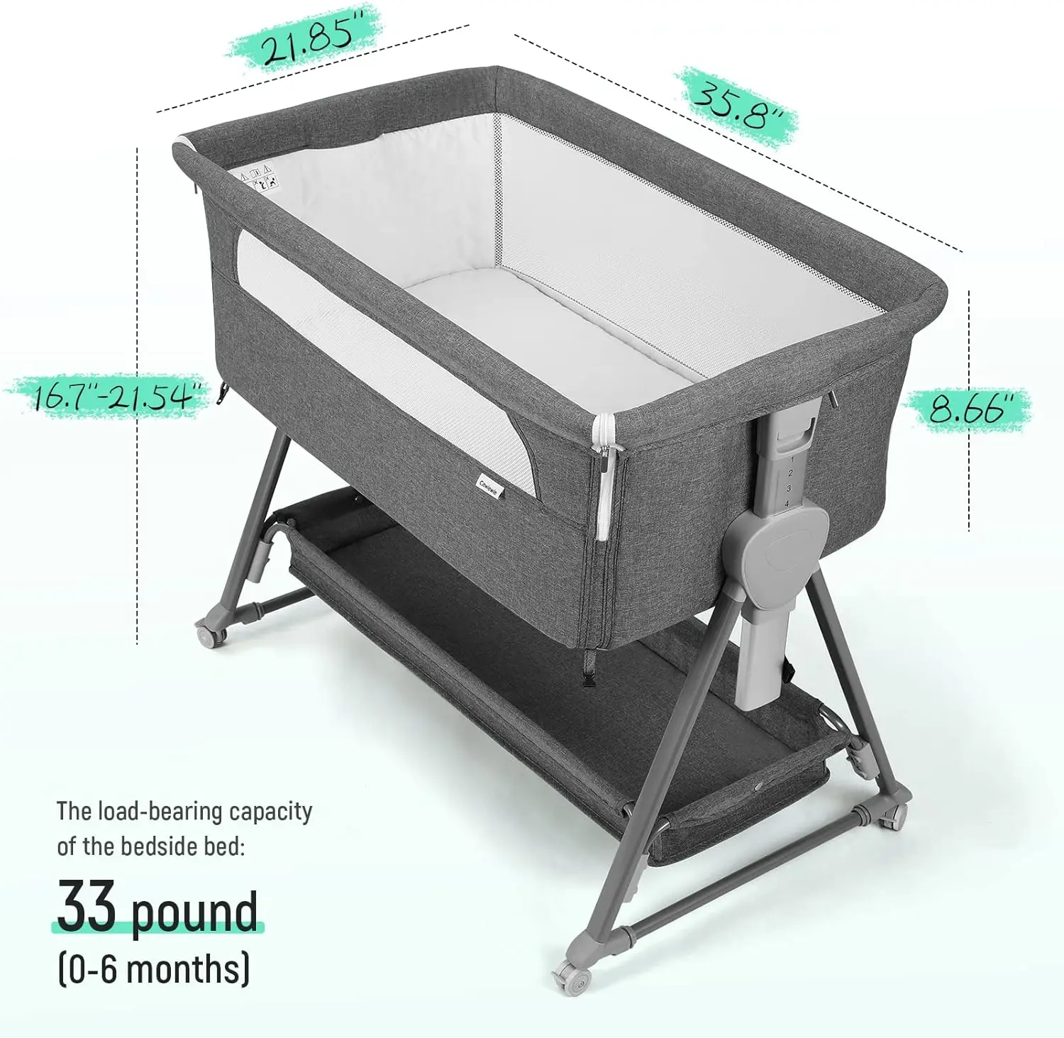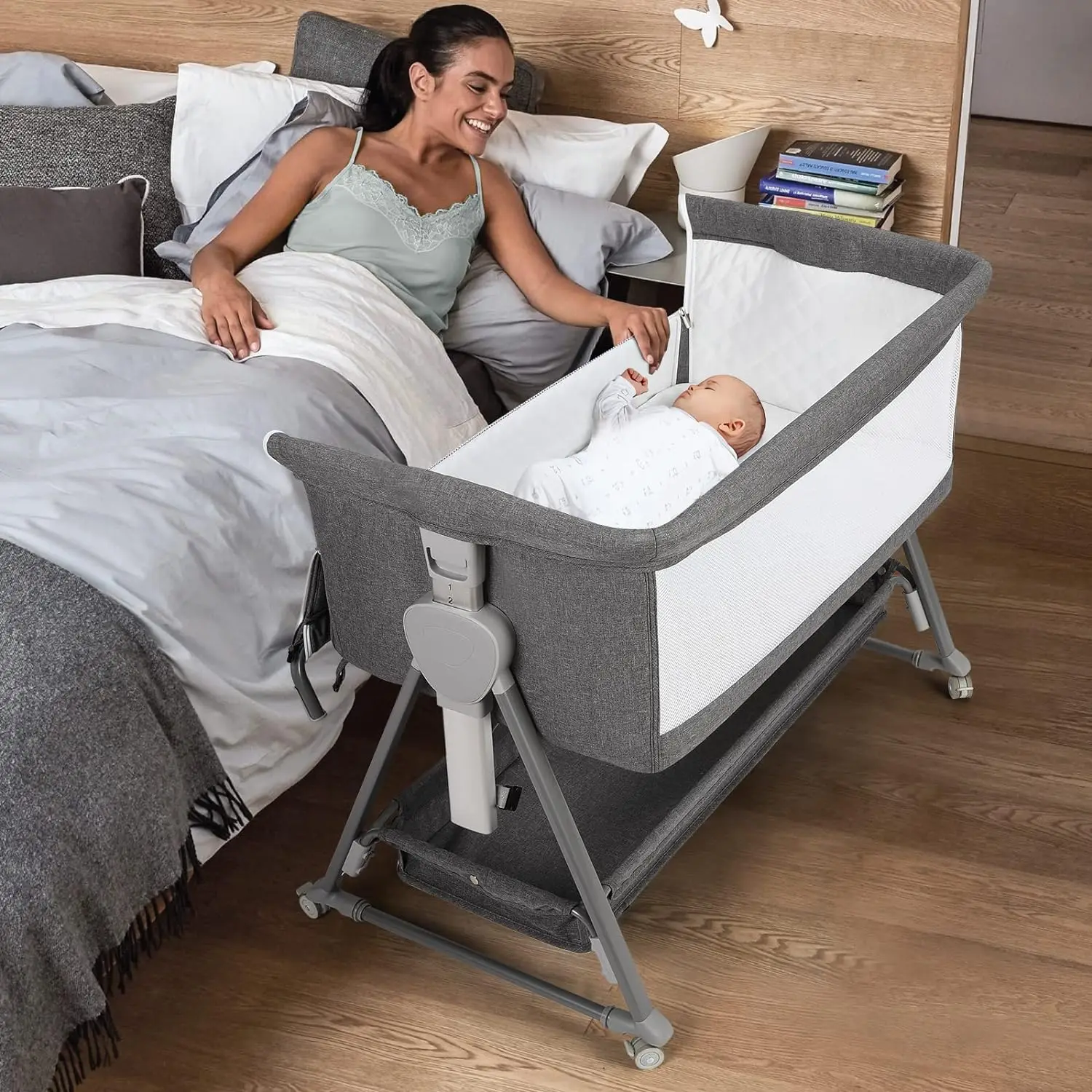 Baby Bassinet Bedside Sleeper – Easy-Fold Crib with Storage & Wheels