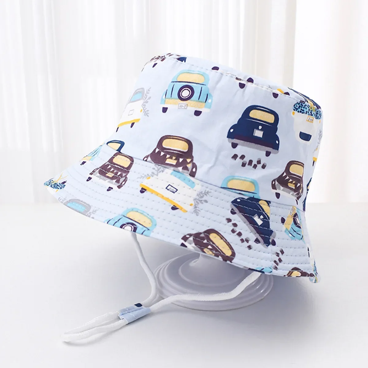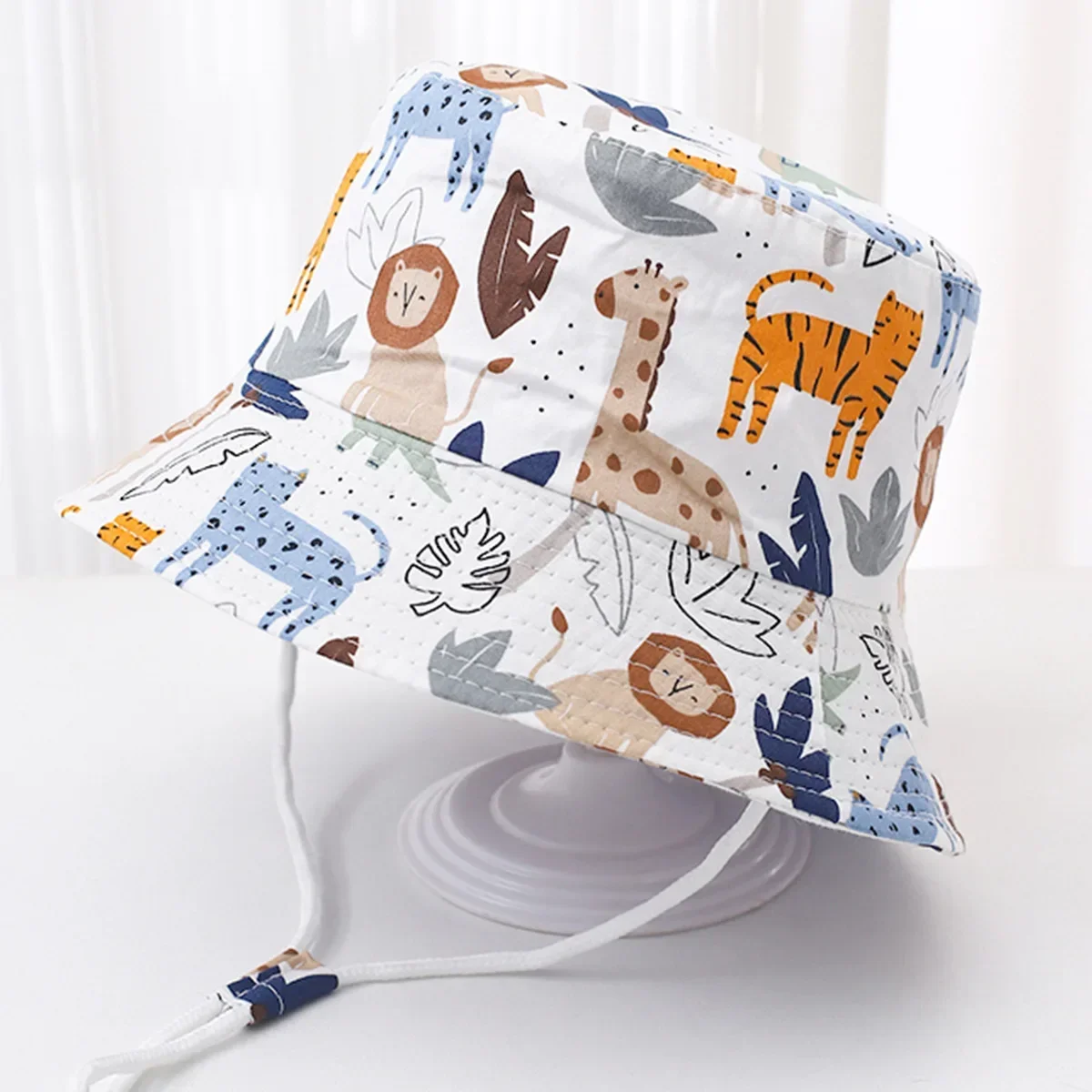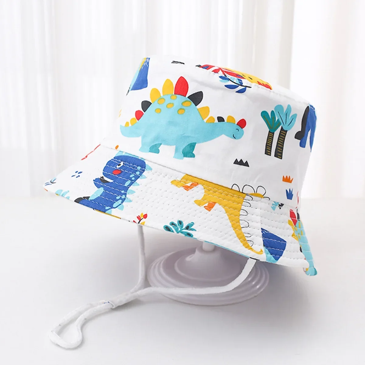 Baby Sun Hat Summer Kids Cartoon Dinosaur Print Soft Cotton Bucket Hat For Girls Boys Panama Beach UV Protection Cap Children