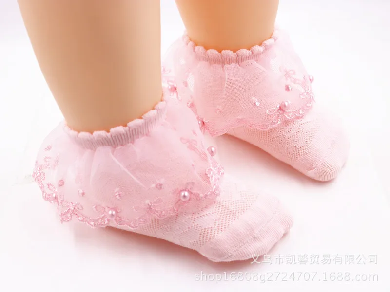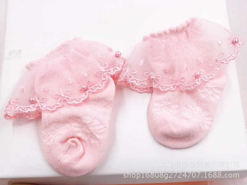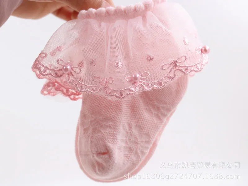 Children’s lace socks spring and summer children’s girl’s pearl Lace Princess socks, baby’s mesh thin socks and socks 0 -7 Year