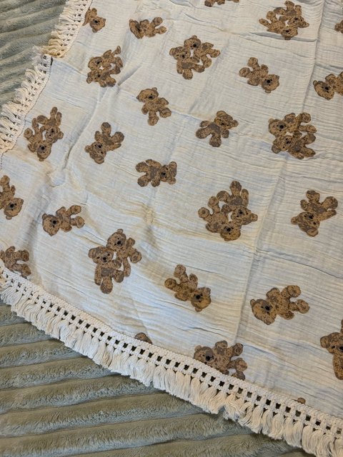 Cotton Muslin Baby Blanket – Cute Bear Swaddle for Newborns & Infants