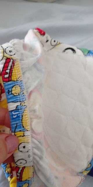 I actually bought these for my Dog.lol. Of course I will need to make a cut out for his tail. These potty training pants are super thick and well crafted as well as oh so dang cute! The interior has been reinforced with a quilted liner. The leg area has lots of room for movement and is stretchy yet comfortable; as is the waistband. This set came with 4 different patterns. My favorite is the panda bear. I highly recommend this product and will buy more in the future if I need to. Price point was excellent especially for the quality. No odors were noted on the products.