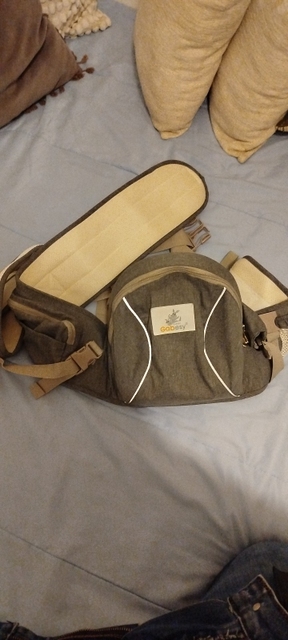 Holds baby well, good storage in the pocket. The shoulder strap doesn’t help as much as I hoped, and the waist strap doesn’t get that big, but it does the job and is good for the price.