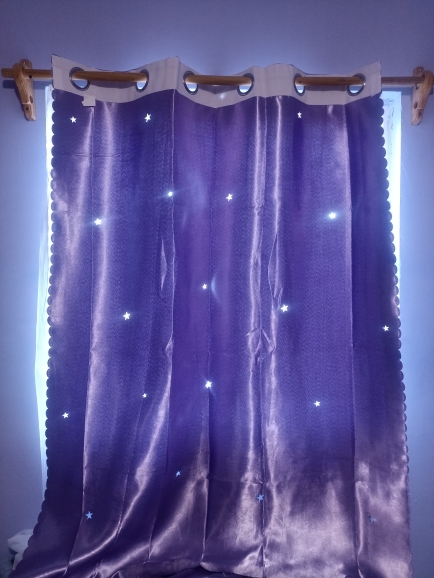 Look beautiful💖I place them as soon as they arrived, the quality of fabric and sewing are good and the finishes are very fine, I liked them very much, at dawn🌅By the star-shaped holes🌟The light passes and it looks very cute. I recommend a lot.