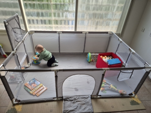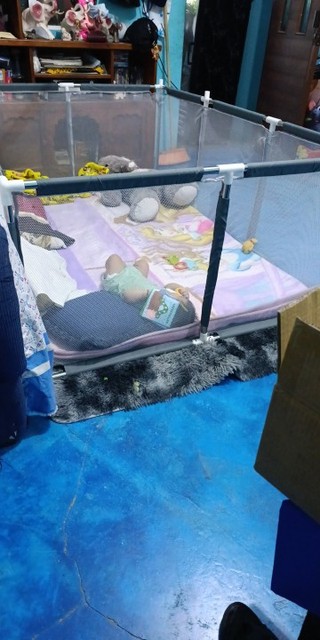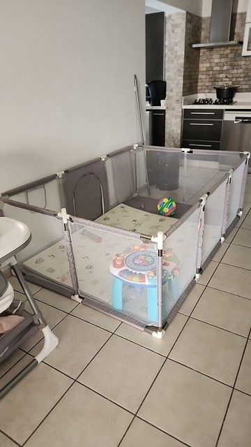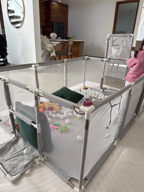 Beautiful, I loved it, I had doubt if it resists when the child stands and yes, perfect for babies to play and safe, I put rugs on the floor as a precaution against any fall to the floor and avoid a direct hit to the floor, it is large: it measures like 1.50cm (I did not measure the measurements) But it’s just like what I bought, I loved it, it’s not very difficult to put together, just take into account the measurements of each tube since to arm it brings the guide according to the numbers of the tubes, it helps you to rest as a mother and for the baby to have fun while doing some activity. I will remember to comment later to see the passage of time in its use.
