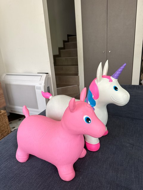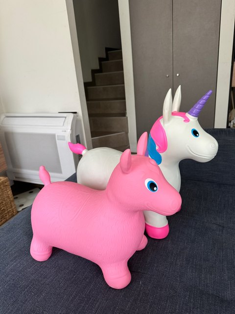 Fast delivery, before expected. Excellent Material, resistant. The pink horse is smaller than the unicorn for consideration.