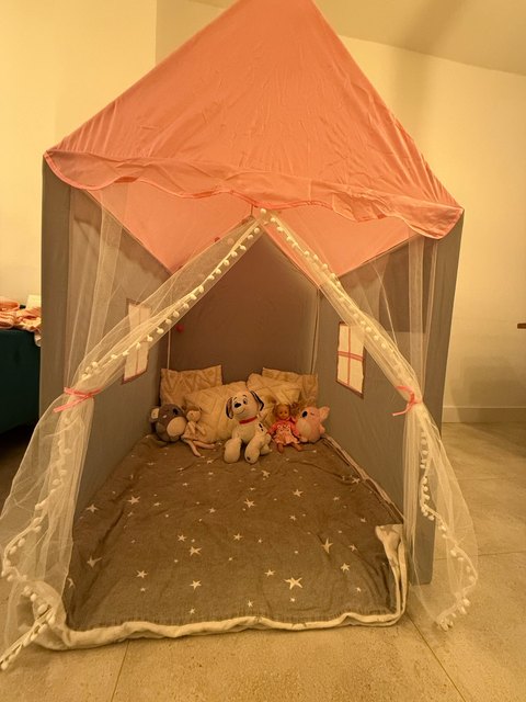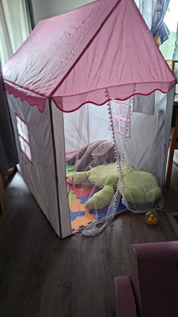 Large tent and easy gain for children from a year old and older. You can put in everything that the child likes Very recommended