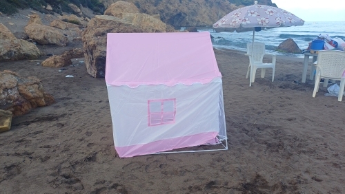 Bigger than you think .. That’s nice. When assembling, you need to leave the roof frame, cover the fabric, and then assemble the roof from inside. It’s very hard to assemble up to the roof and put on the fabric.
