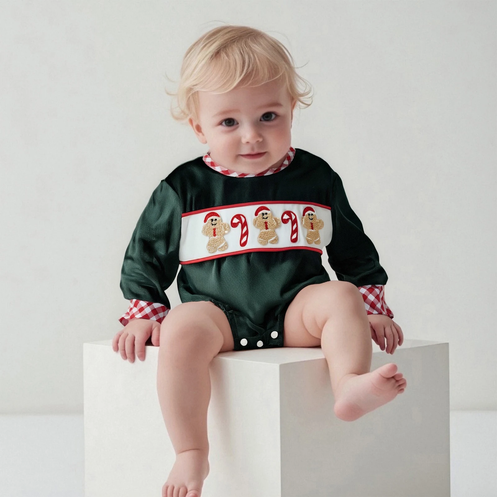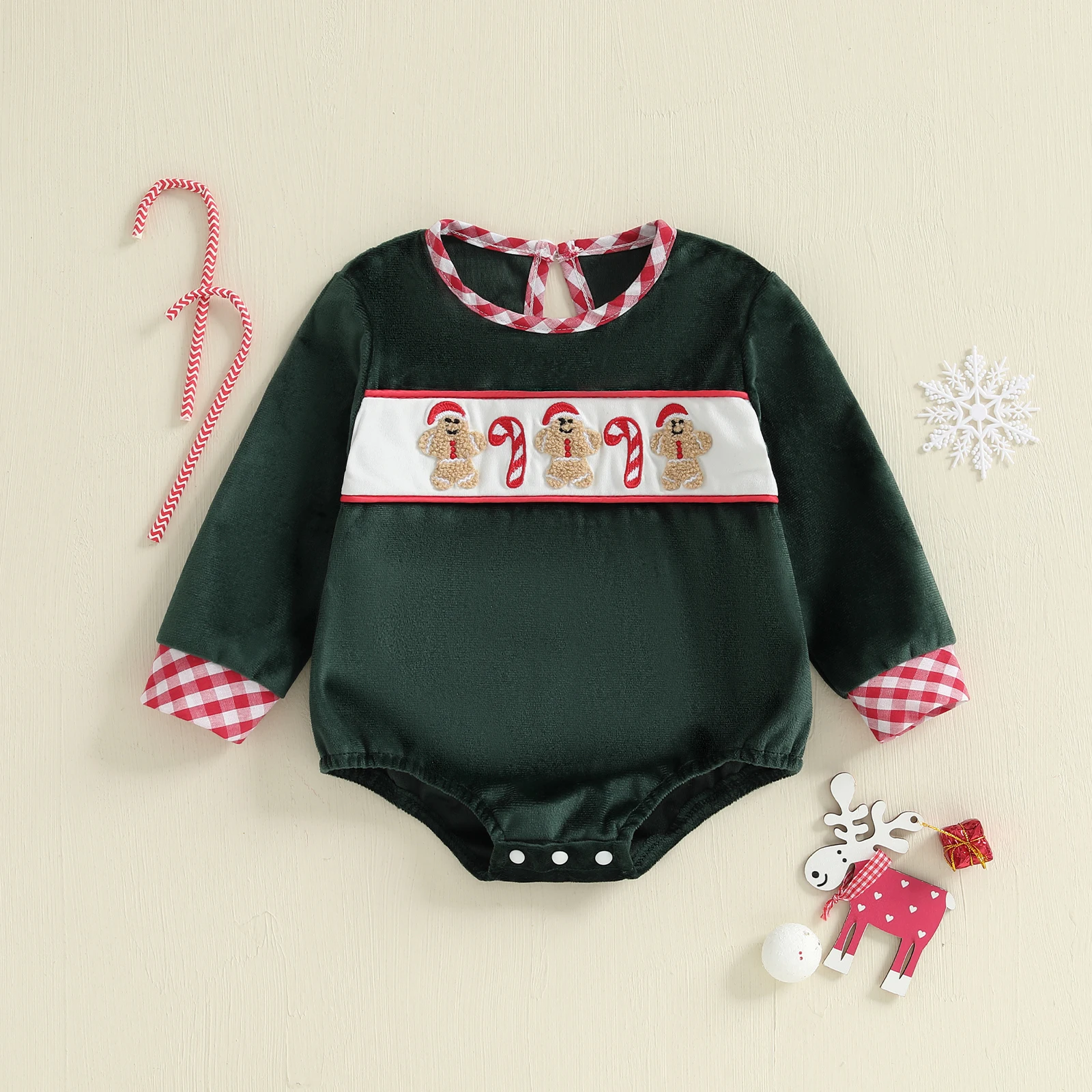 Baby Christmas Romper Gingerbread Man Embroidery Long Sleeve Round Neck Bubble Jumpsuit Size(cm)Â Â Â Â Â Â Â Â Â Â Â Â Â Â Â Â Â Â Â Â Â Â Â Â Â Â Â Â Â Â Â Â Â Â Â Â