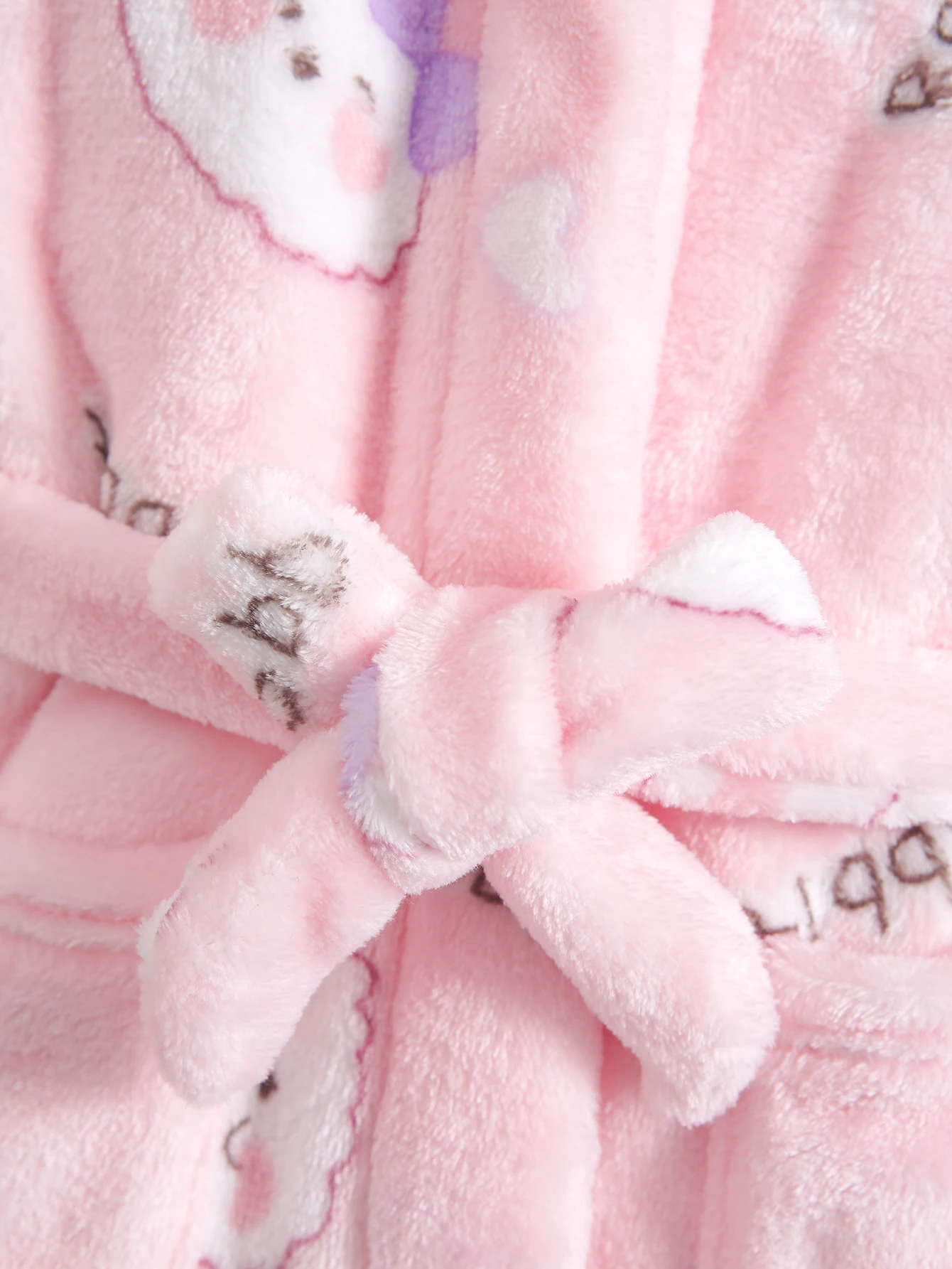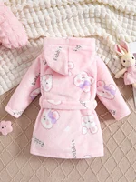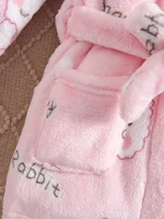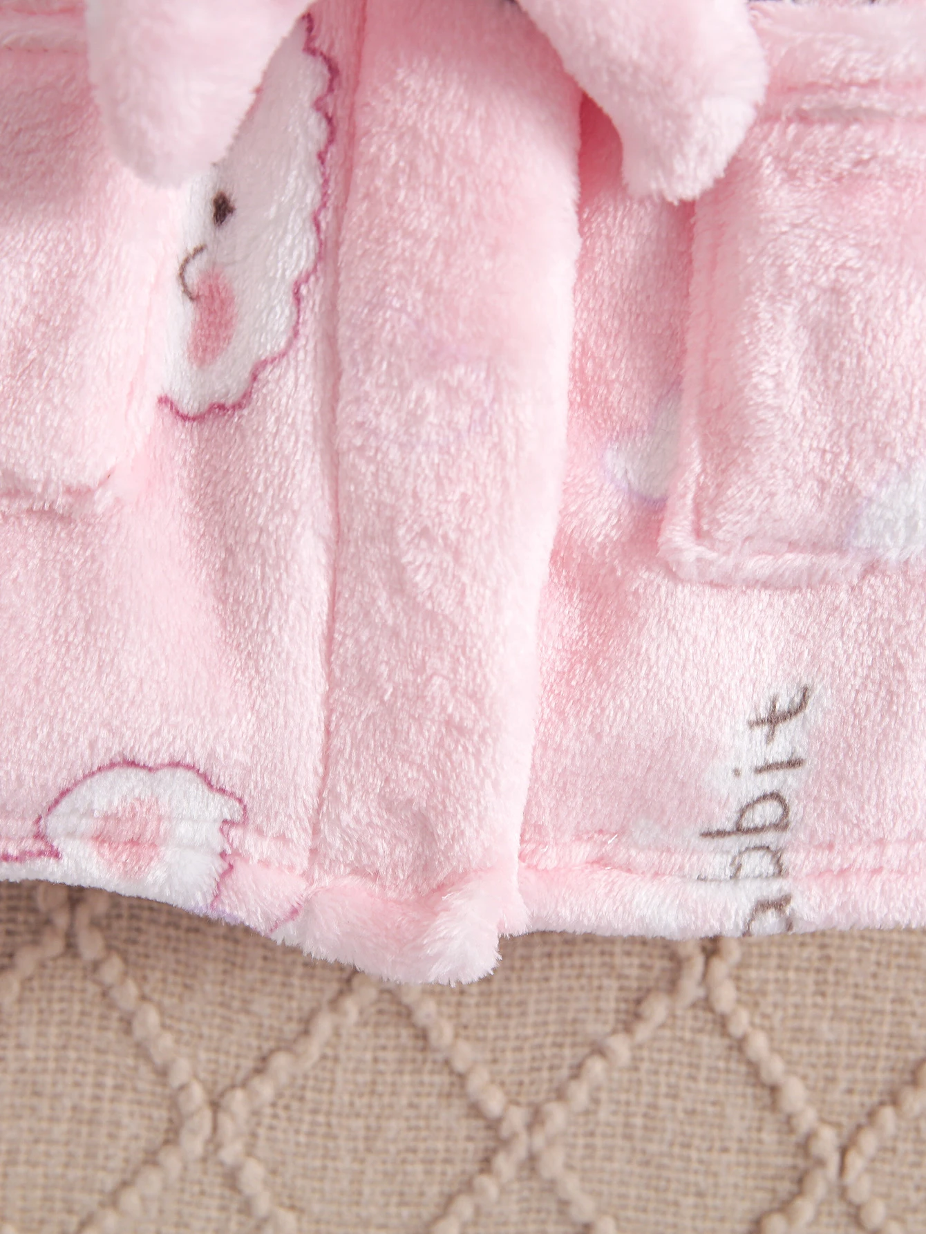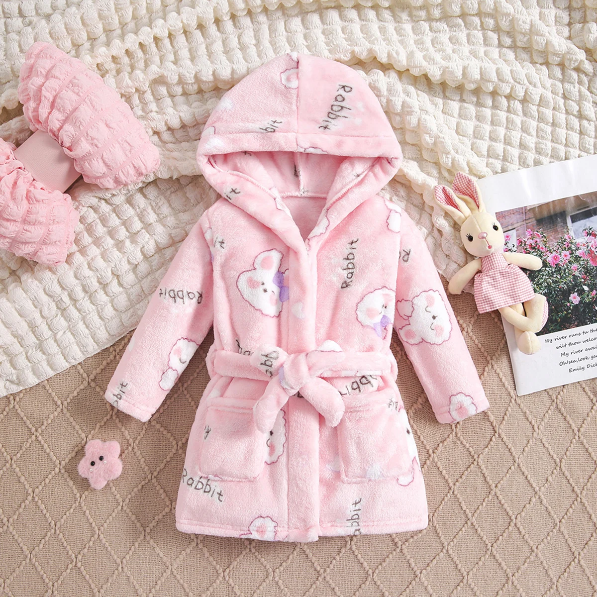 Toddler & Kid Girls’ Cute Cartoon Bunny Hooded Bathrobe With Bow, Thick Flannel Warm & Cozy Loungewear, All-Season Home Wear