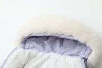 The fur collar is removable, and it comes with gloves and foot covers, keeping the baby warm from head to toe.