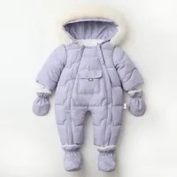 Winter Baby Rompers Fur Lining Boys Jumpsuits Warm Fleece Padded Toddler Snowsuit Infant Outfit