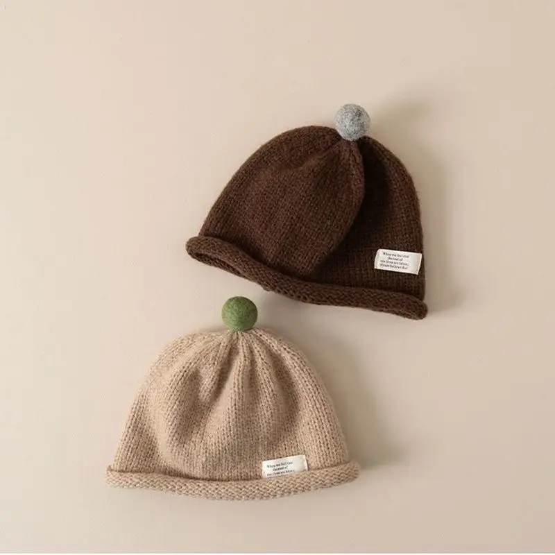 Winter Warm Baby Knitted Hat Cute Pompom Infant Beanie Cap Korean Solid Color Kids Boy Girl Woolen Hats