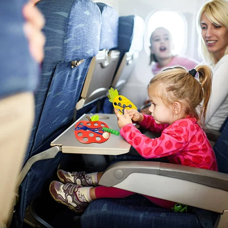 Wooden Lacing Toy Educational Fruits Threading Activity Puzzles Studying Fine Motor Skill Car Toy Set for Toddlers Kid Best Gift