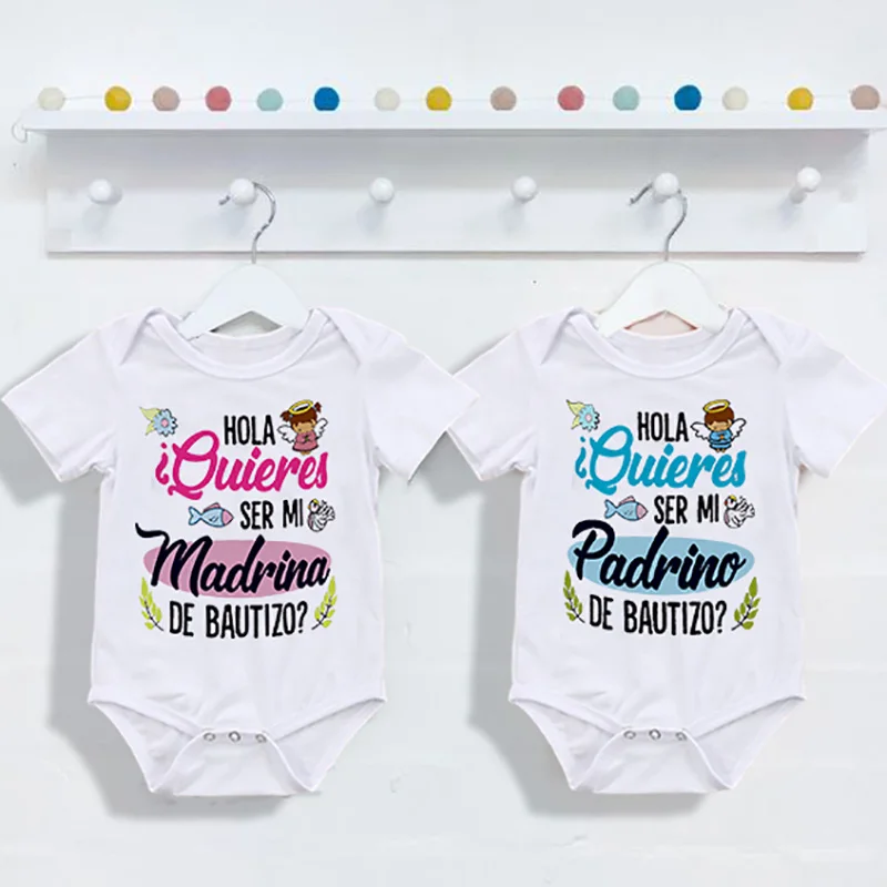 Would You Be My Godmother & Godfather Print Baby Bodysuits Baby Ask for Madrina Padrino Baptism Clothes Summer Infant Jumpsuits